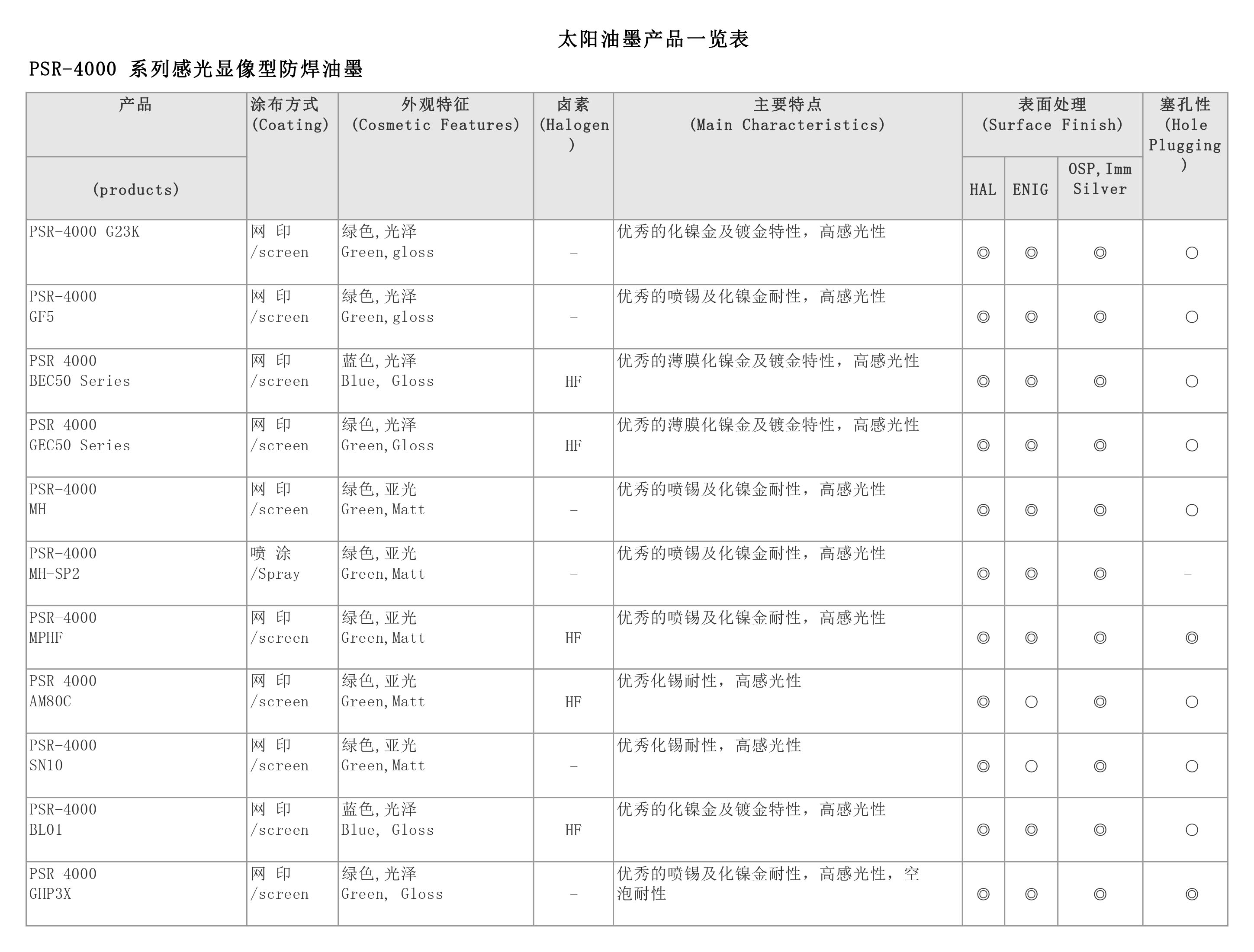 TAIYO PSR-4000 AUS308具有以下特点: