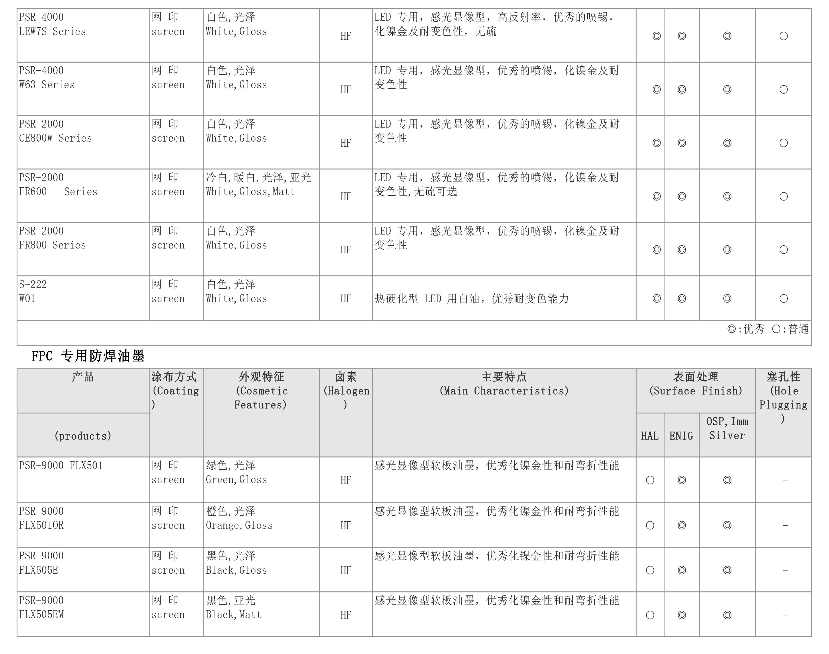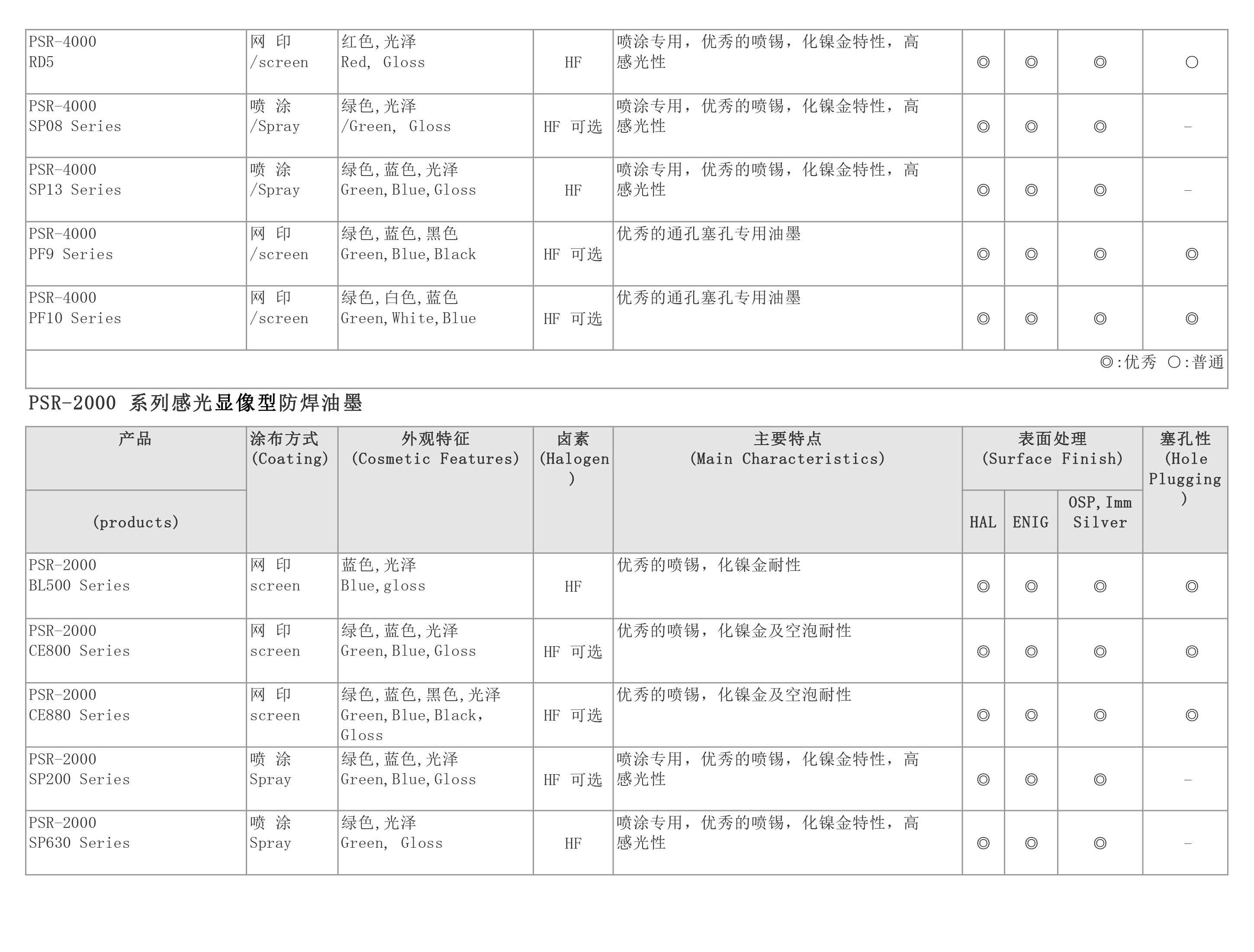 产品名称: 主要: PSR-4000 AUS 308 固化剂: CA-40 AUS 308